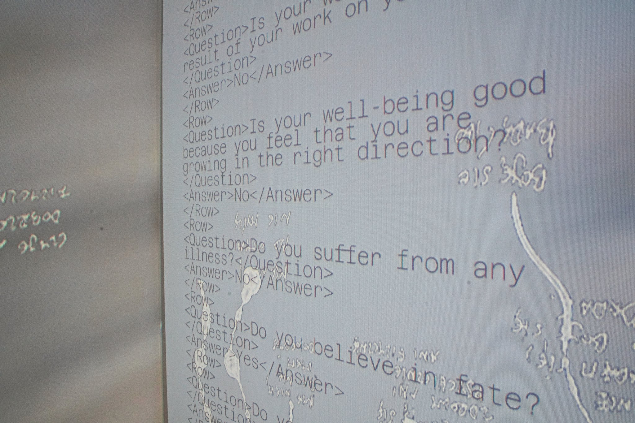The goal of the project being developed by Linda Lach is to draw attention to the relationship between humans and databases. Access to massively stored personal data is difficult. Every day we encounter the world of the front end, the façade, and entering this world requires specialized knowledge and determination. The action at Galeria Foksal, like the entire project, will make user data more accessible and manageable. In the first phase of the project, carried out at the Foksal Gallery, the program will generate visual solids based on variable data provided by the users, making it possible to reflect on the relationship between man and his digital counterpart – the code.