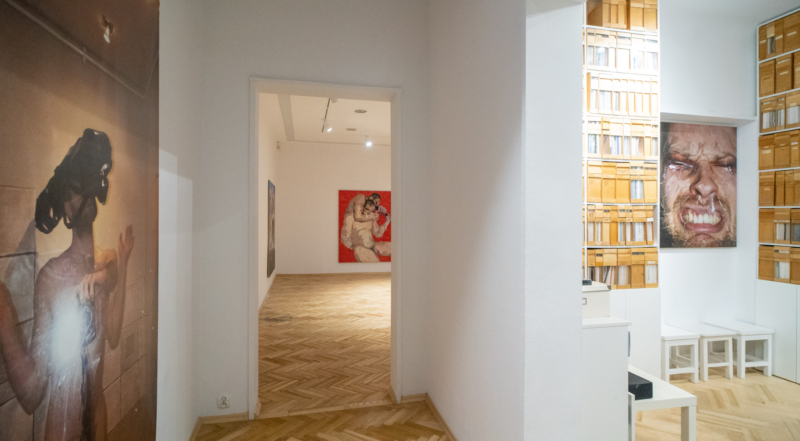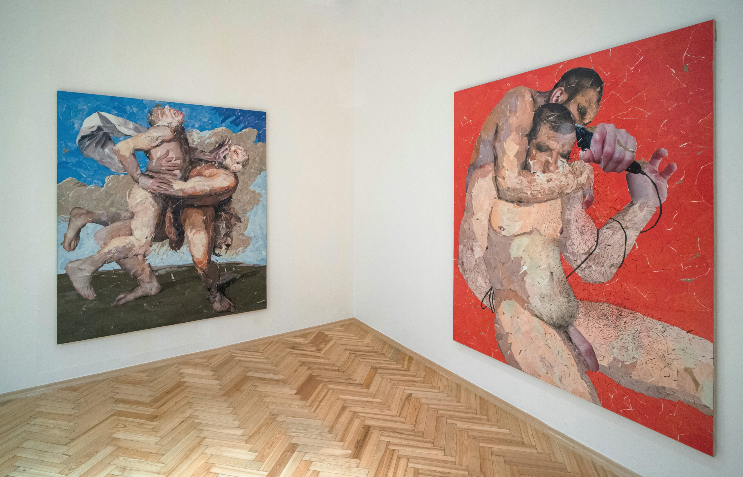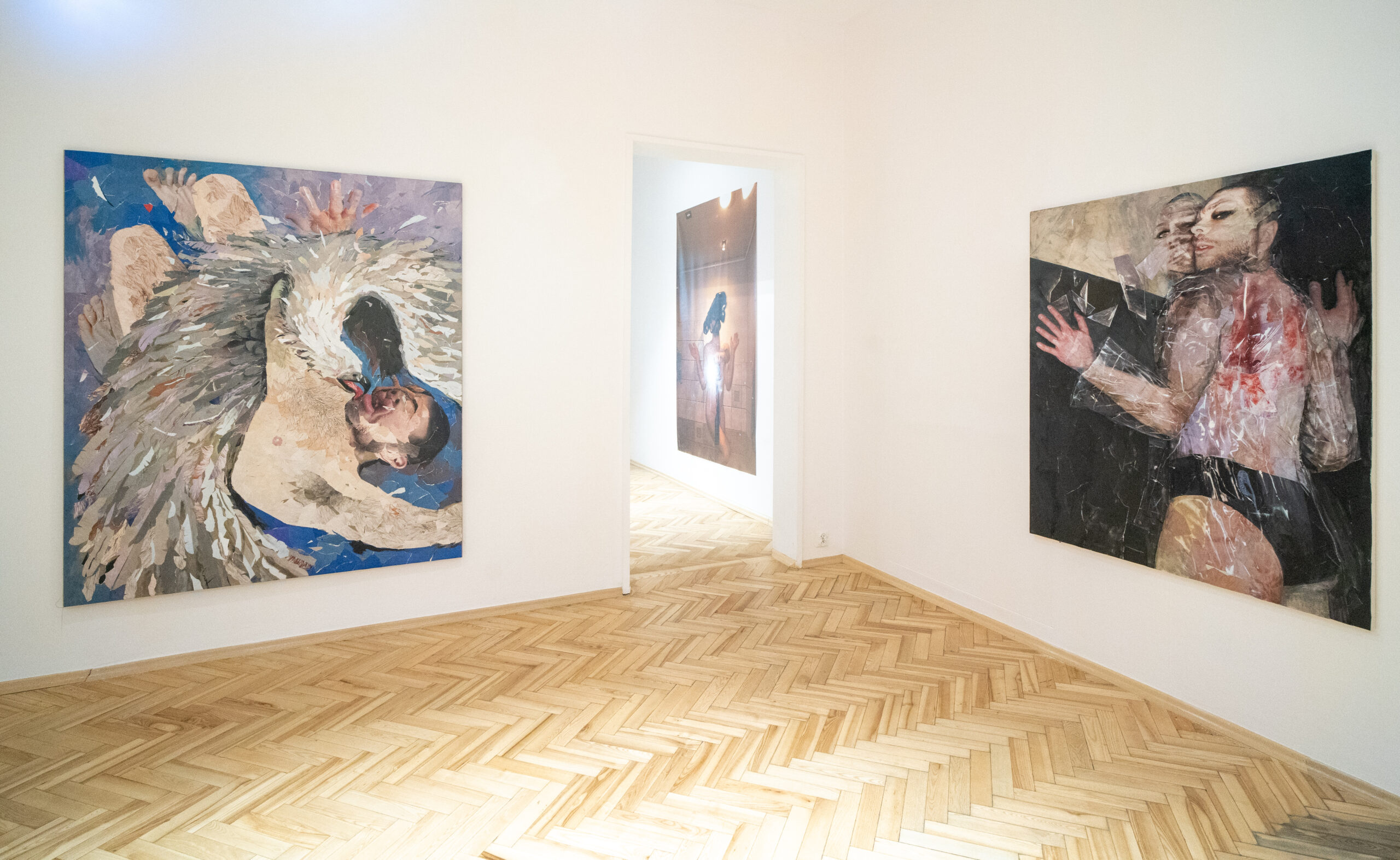 The works exhibited are all self-portraits – pictorial replicas or clones of the artist. They are queer failures of seeing, documenting unsuccessful attempts to build a solid identity out of visual scraps. They reflect a failure of socialization, society’s inability to force queer people into confines of heteronormativity. The artist’s pronounced interest in the domain of non-human – in figures of androids, aliens, clones, cyborgs, hybrids and Greek heroes – is a reaction to the experience of dehumanization,and also an expression of alienation, a queer estrangement from the status quo.